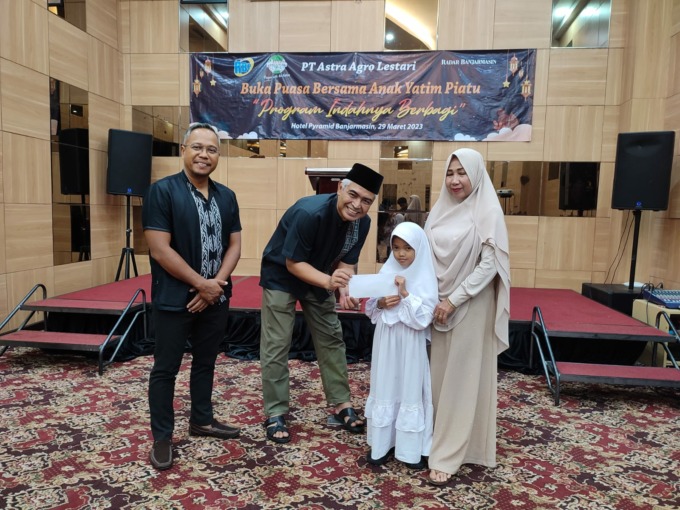 BANJARMASIN – Dalam puncak menyemarakkan bulan suci Ramadhan PT Astra Agro Lestari mengadakan kegiatan dengan berbagi kebahagian dengan bersama anak yatim dari Panti Asuhan Putri Nur Azizah di Hotel Pyramid Banjarmasin, Rabu (29/3).